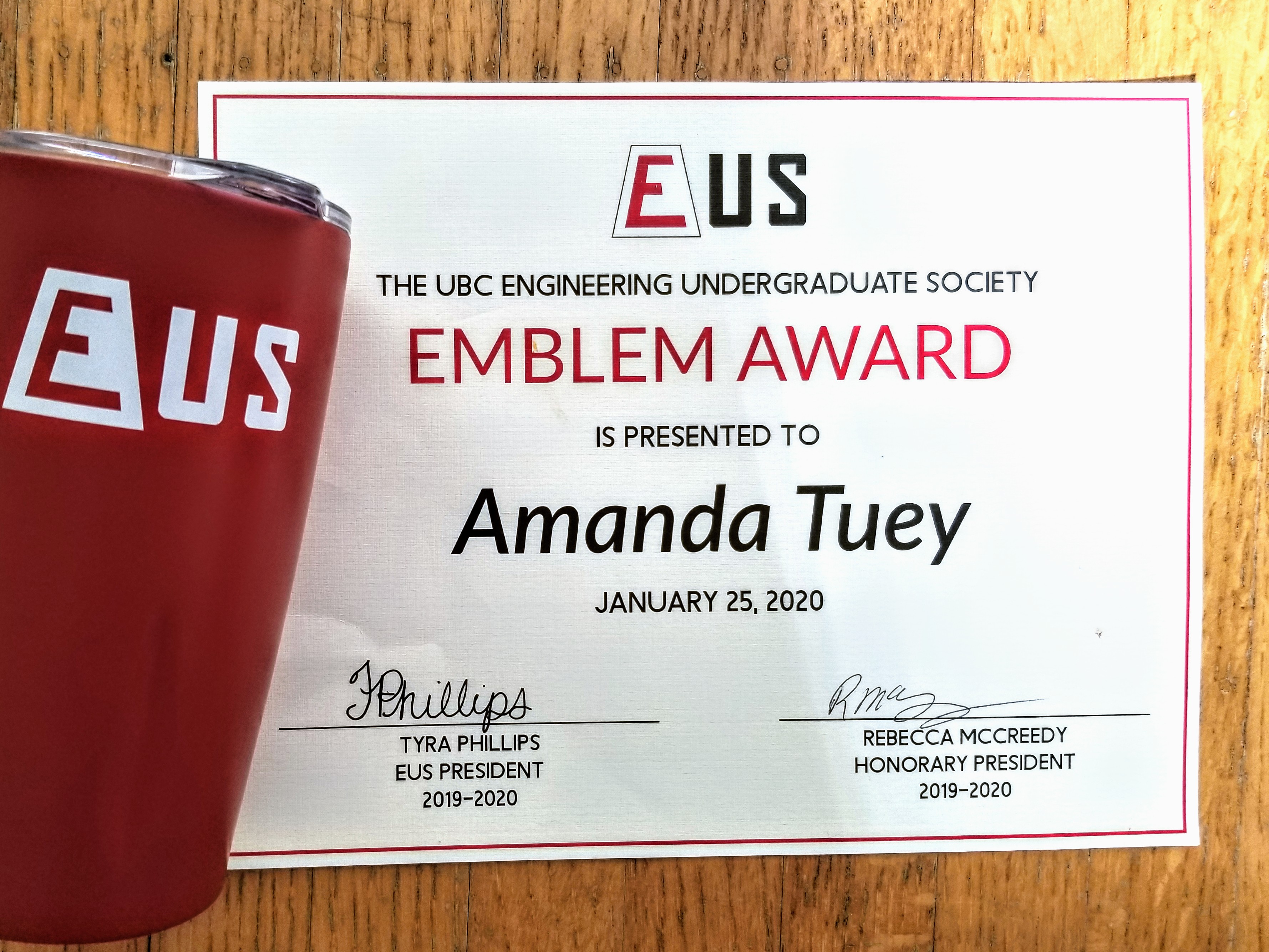 - EUS Long Term Service Awards – Emblem Award (2020)